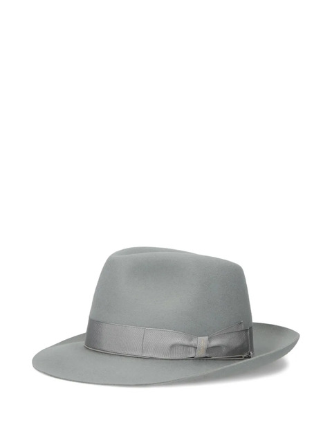 grey felt material medium brim grosgrain ribbon band ribbon bow