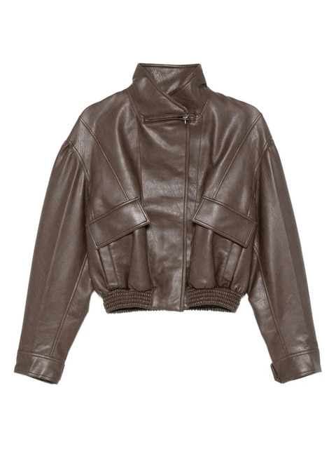 brown leather effect concealed-zip fastening high neck flap pockets