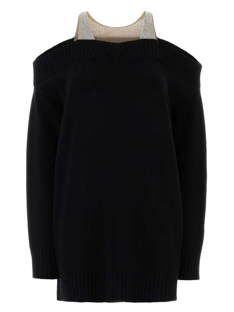black virgin wool cold-shoulder design rhinestone embellishment ribbed hem