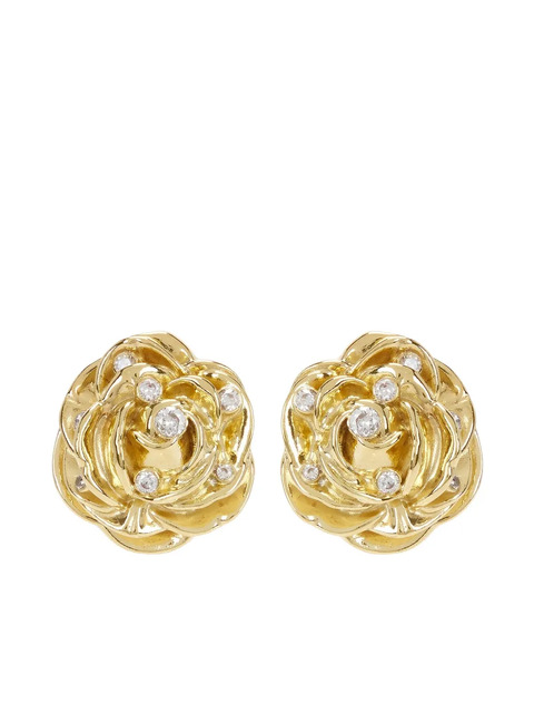 gold-tone rose motif crystal embellishment post-back fastening textured finish These earrings come as a pair. Normal everyday use and external agents may reduce the lustre of gemstones and gold surfaces. To maintain, use specific, non-abrasive products specially meant for cleaning jewellery.