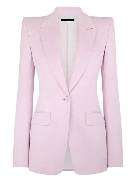 orchid pink single button fastening peaked lapels flap pockets straight hem