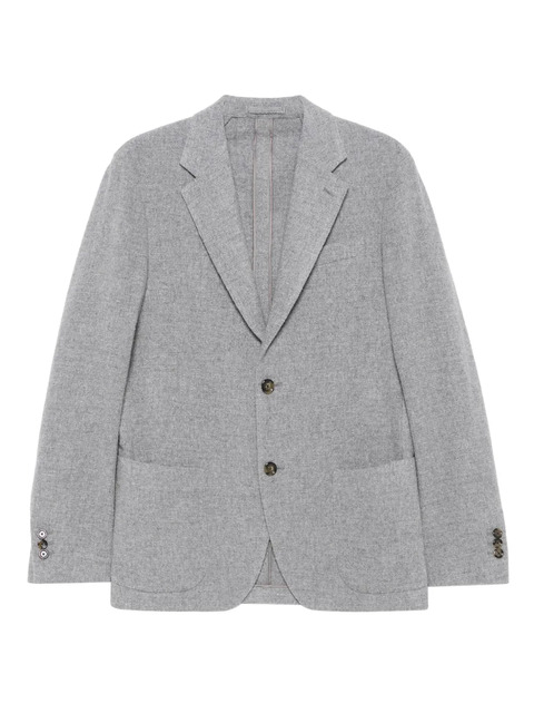 grey front button fastening front patch pockets notched lapel long sleeves buttoned cuffs