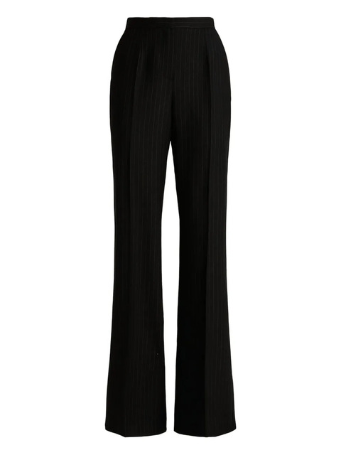 black pinstripe pattern pleated front side slit pockets straight leg high waist