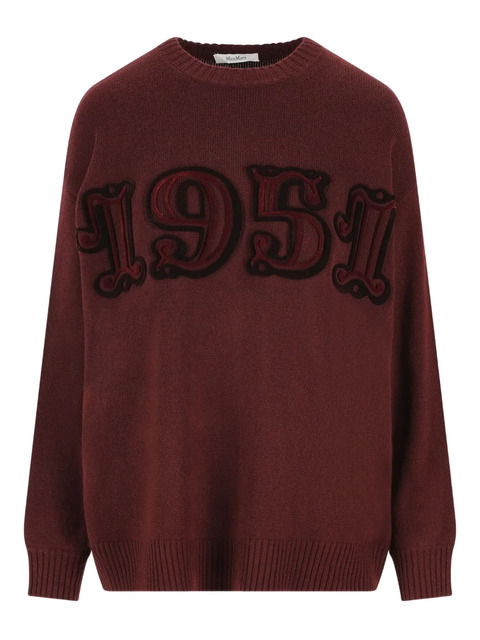 dark red wool-cashmere blend embroidered lettering crew neck long sleeves