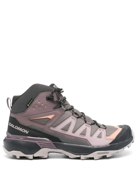 purple/grey/orange waterproof GORE-TEX® material panelled design round toe logo print to the side rubberised logo detail at the tongue pull-tab at the heel branded insole rubber sole front lace-up fastening