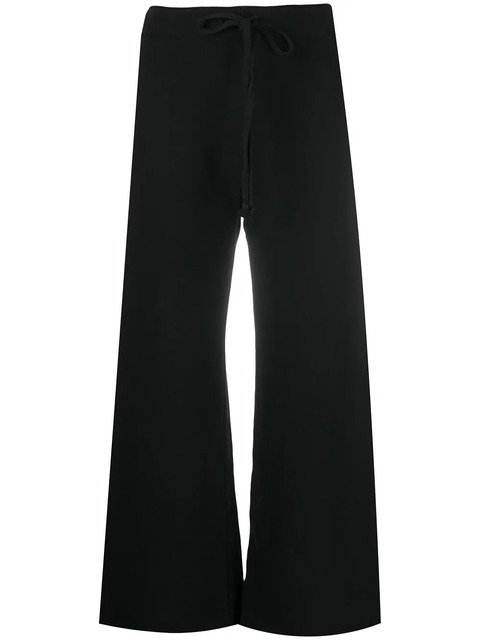 black cotton rear patch pocket high waist drawstring fastening wide leg cropped