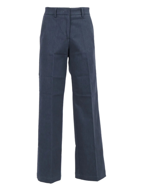 dark blue concealed hook and zip fastening side slit pockets rear welt pockets belt loops straight leg