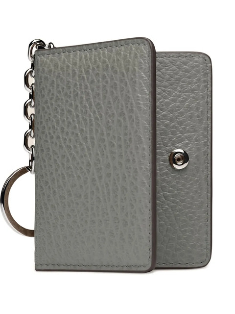 grey grainy leather snap button closure multiple card holders keyring chain four stitches detail