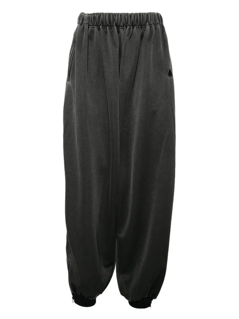 smoke grey elasticated waistband with internal drawstring two side zip-fastening pockets short side zip fastening on hem