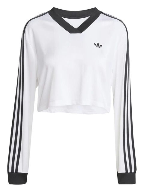 white V-neck long sleeves cropped three stripes logo