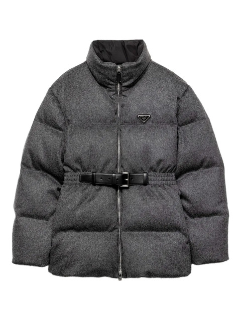 Prada belted logo-plaque down jacket - 31097445 (LPN337477)