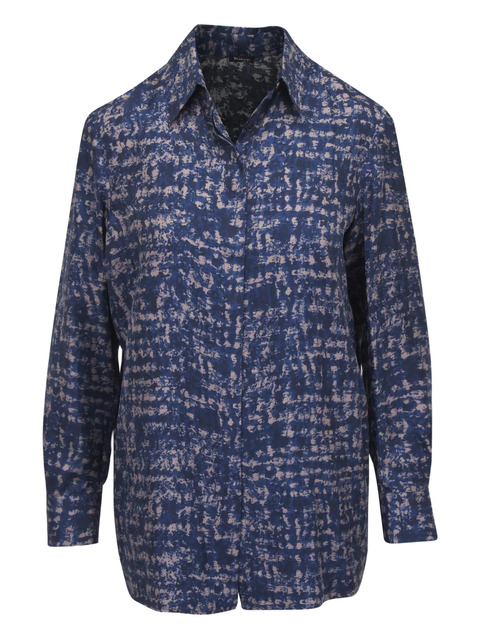 dark-blue abstract print long sleeves collared neck concealed fastening