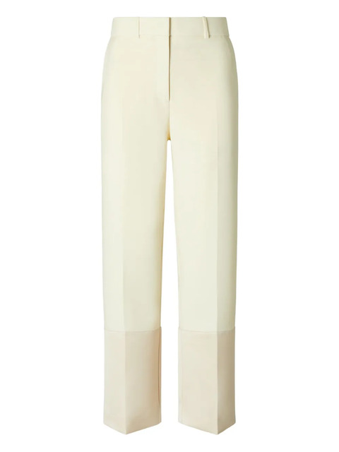 off-white crepe texture high waist straight leg contrast cuffs zip fly