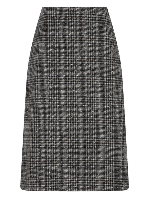 grey checked pattern wool blend straight hem a-line shape concealed zip fastening