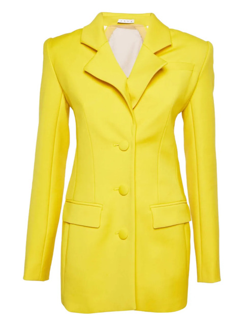 yellow wool crystal detailed cutout back open back three button front flap pockets Condition: GOOD. This previously owned and used item is in good condition with minimal signs of use. This may include fading of material or plating and scratches.