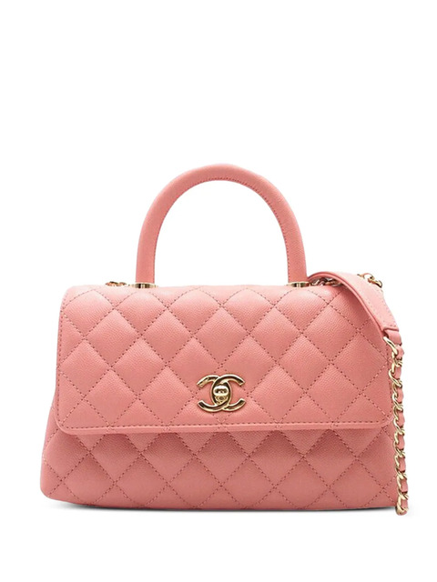 quilted caviar leather body rolled leather top handle leather woven-in chain strap front flap with a twist lock closure exterior back slip pocket interior zip and slip pockets pink Inclusions: box, shoulder strap, dust bag. Condition: EXCELLENT. This previously owned item is in near-perfect condition with no signs of damage or use. Due to the exclusivity of this item and its limited availability, processing and delivery might take longer than usual. Please refer to the photos on this product page for a detailed view of the item, including any damages declared.