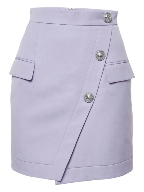 lavender asymmetrical design pockets metallic buttons wool fabric Condition: GOOD. This previously owned and used item is in good condition with minimal signs of use. This may include fading of material or plating and scratches.