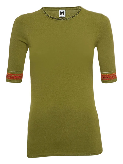 olive green neck embroidery cuff embroidery three-quarter sleeves knitted construction The item you receive may differ slightly from the item photographed. This is due to the artisanal nature with which all Missoni products are constructed.