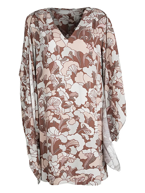 brown floral print V-neckline long sleeves Condition: EXCELLENT. This previously owned item is in near-perfect condition with no signs of damage or use.