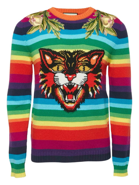 2023 multicolour Tiger intarsia rainbow stripes Condition: EXCELLENT. This previously owned item is in near-perfect condition with no signs of damage or use.