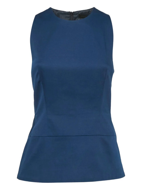 navy blue stretch-cotton sleeveless zip closure peplum hem Condition: GOOD. This previously owned and used item is in good condition with minimal signs of use. This may include fading of material or plating and scratches.