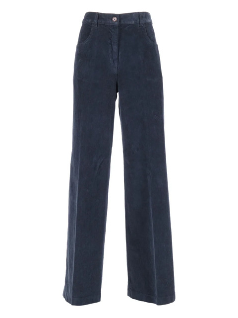 dark blue corduroy side pockets concealed fly and button fastening high waist
