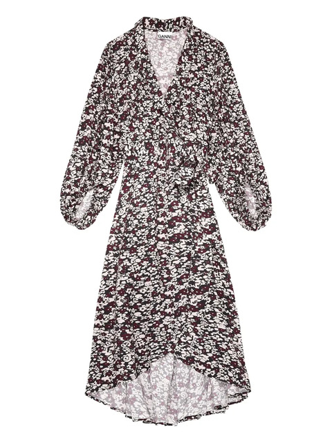 GANNI floral-print wrap midi dress - 32019592 (LPN338134)