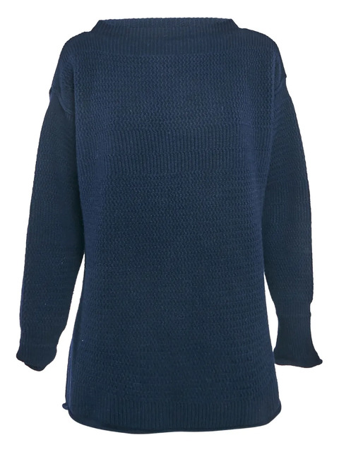 navy blue wool textured pattern subtle design boat neck long sleeves Condition: EXCELLENT. This previously owned item is in near-perfect condition with no signs of damage or use. The item you receive may differ slightly from the item photographed. This is due to the artisanal nature with which all Missoni products are constructed.