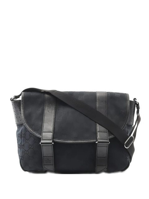 2000 dark navy GG pattern leather trims adjustable shoulder strap internal zip pocket