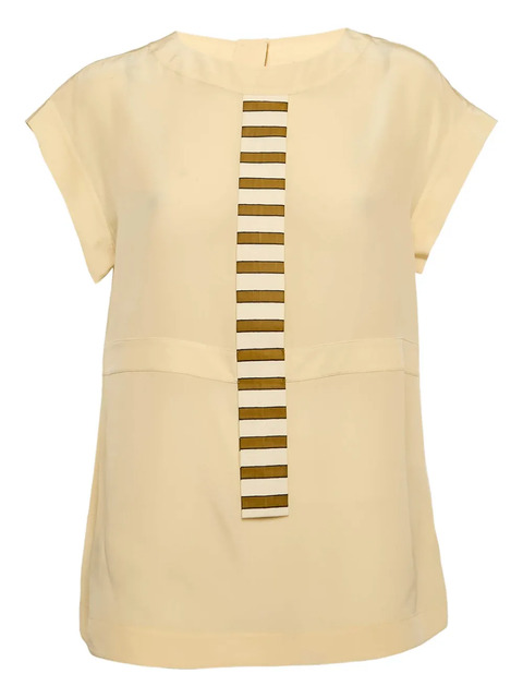 light beige silk stripe detail short sleeves Condition: GOOD. This previously owned and used item is in good condition with minimal signs of use. This may include fading of material or plating and scratches.