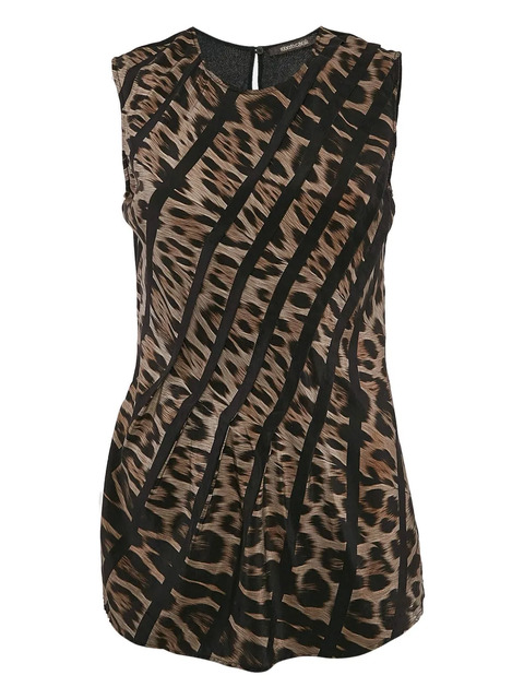 brown leopard print diagonal stripe pattern sleeveless silk pleated hem Condition: GOOD. This previously owned and used item is in good condition with minimal signs of use. This may include fading of material or plating and scratches.