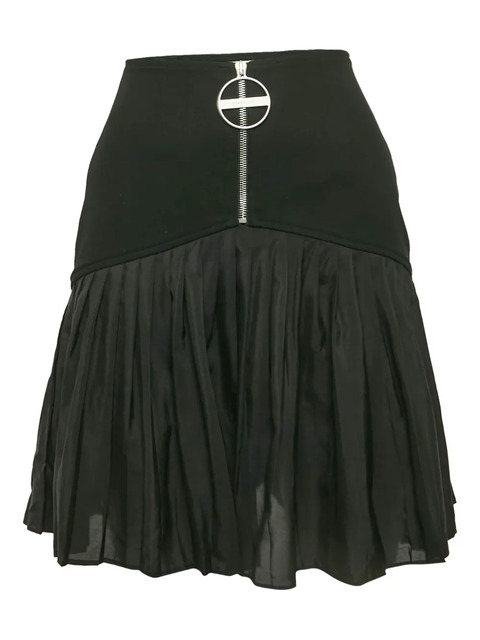 black pleated detailing zip closure circular metal embellishment thigh length Condition: GOOD. This previously owned and used item is in good condition with minimal signs of use. This may include fading of material or plating and scratches.