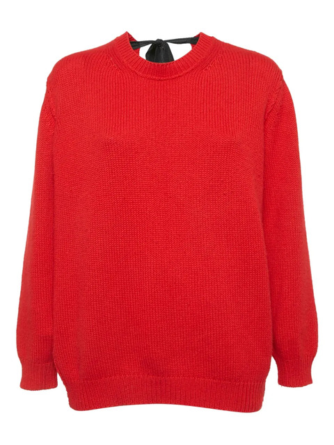 red cashmere ribbed knit rear tie fastening crew neck long sleeves straight hem Condition: GOOD. This previously owned and used item is in good condition with minimal signs of use. This may include fading of material or plating and scratches.