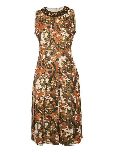 yellow printed pattern pleated construction eyelet details sleeveless Condition: EXCELLENT. This previously owned item is in near-perfect condition with no signs of damage or use.