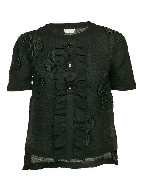 Fendi Pre-Owned floral-embellishments ruffled blouse - 31298644 (LPN338479)