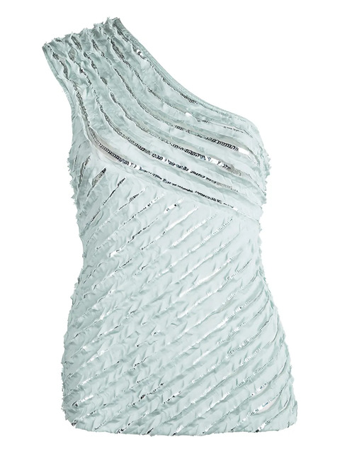 blue sequin embellishment one-shoulder neck straight hem Condition: GOOD. This previously owned and used item is in good condition with minimal signs of use. This may include fading of material or plating and scratches.