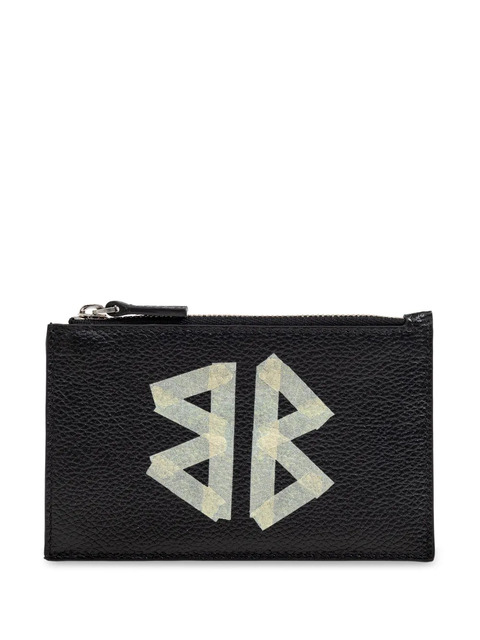 black coin pocket card slots note compartment logo print to the front
