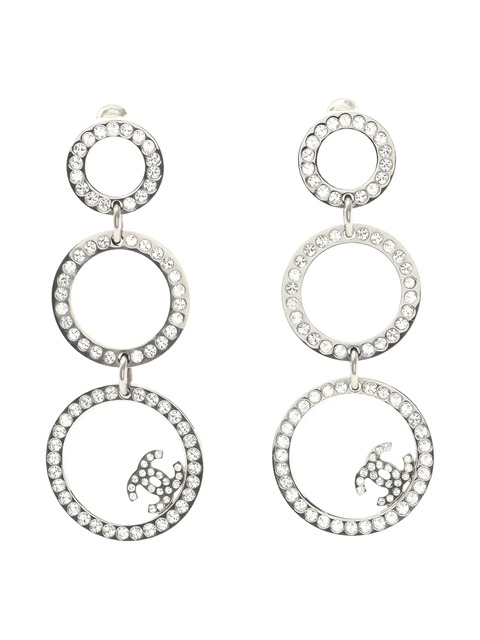 silver-tone rhinestone embellishment Interlocking CC logo detail post-back fastening ring detail These earrings come as a pair.