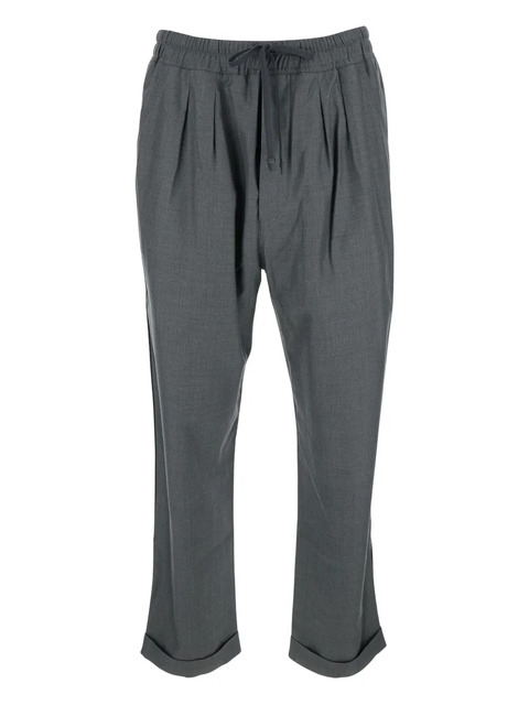 grey pleated front drawstring waistband side pockets welt pockets at rear