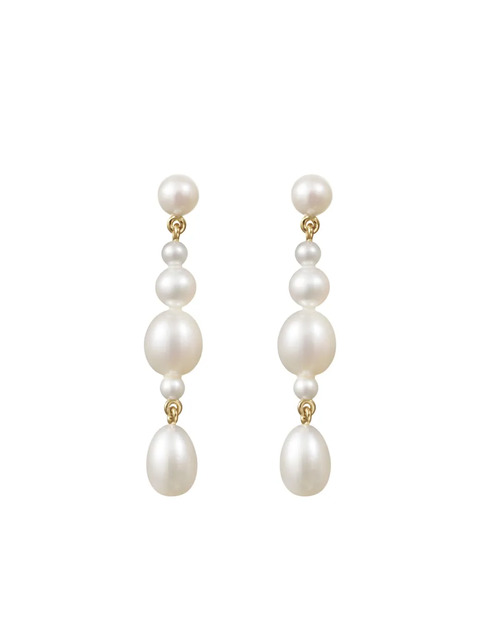 white 14K yellow gold freshwater pearls linear design These earrings come as a pair. Normal everyday use and external agents may reduce the lustre of gemstones and gold surfaces. To maintain, use specific, non-abrasive products specially meant for cleaning jewellery. Pearls should be the last thing that you put on in the morning and the first thing you take off at night. Avoid contact with perfumes or creams, and simply wipe with a soft cloth to clean.