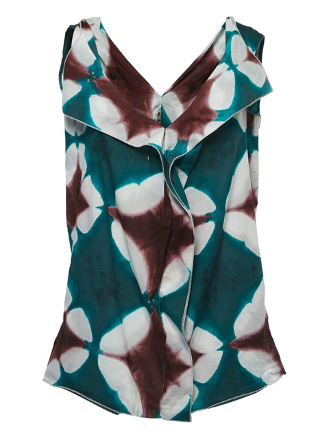 teal green V-neckline all-over graphic-print sleeveless Condition: GOOD. This previously owned and used item is in good condition with minimal signs of use. This may include fading of material or plating and scratches.