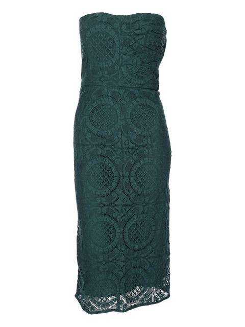 green strapless design lace overlay repeating circular pattern intricate detailing Condition: GOOD. This previously owned and used item is in good condition with minimal signs of use. This may include fading of material or plating and scratches.