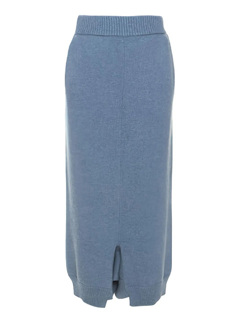 blue dropped rise knit front slit high waist Condition: GOOD. This previously owned and used item is in good condition with minimal signs of use. This may include fading of material or plating and scratches.