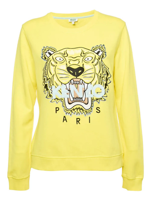 yellow cotton tiger head embroidery embroidered logo crew neck ribbed trim Condition: GOOD. This previously owned and used item is in good condition with minimal signs of use. This may include fading of material or plating and scratches.