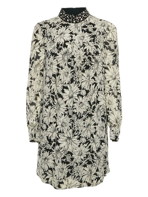 2023 black floral print pleated design high neck Condition: GOOD. This previously owned and used item is in good condition with minimal signs of use. This may include fading of material or plating and scratches.