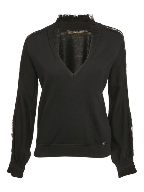 Roberto Cavalli Vintage ruffled lace-sleeve sweater - 31329386 (LPN339096)