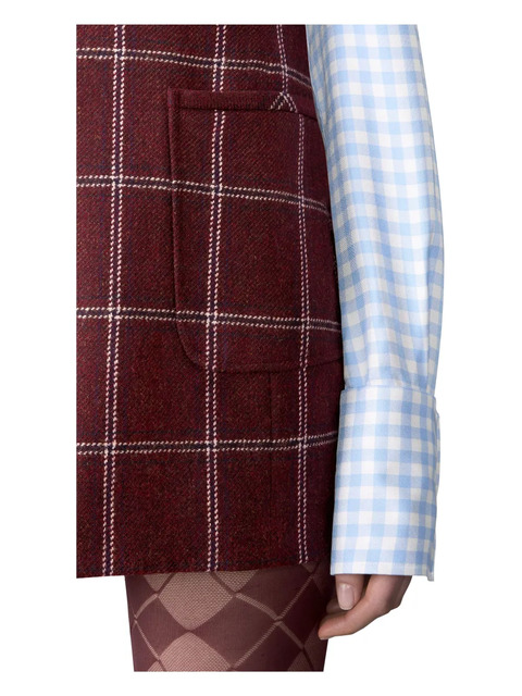 burgundy check pattern sleeveless patch pockets straight hem round neck