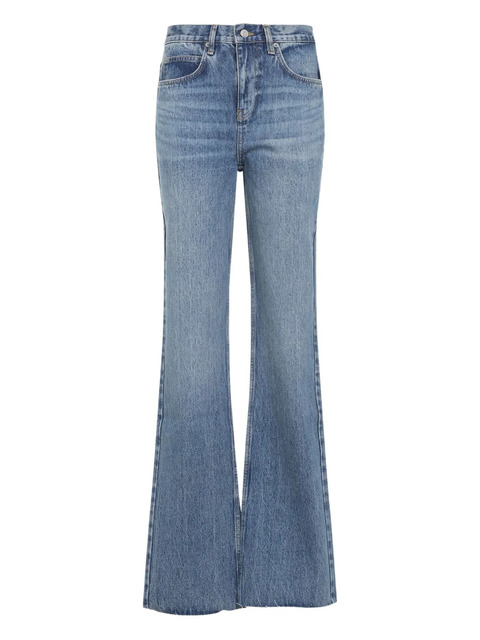 blue five pockets belt loops button fastening flared leg tonal stitching