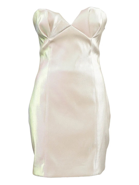 light pink satin finish side zip fastening strapless straight hem Condition: UNWORN. This item is previously owned but remains unworn and in its original condition. However, it does not come with its original tags.