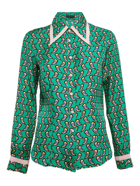 green paisley print long sleeves collared neck cuffed sleeves Condition: GOOD. This previously owned and used item is in good condition with minimal signs of use. This may include fading of material or plating and scratches.